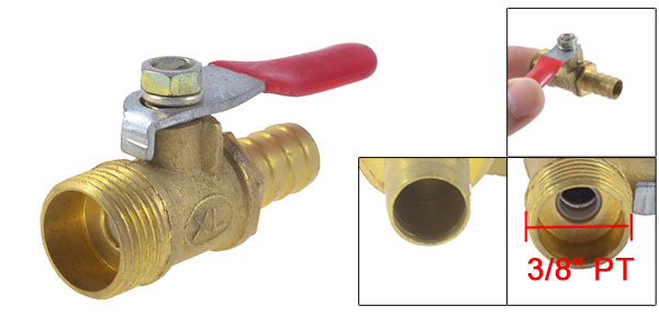 Hose Tail Outer Dia 10mm/ 25/64" Level Handle Size 30 x 11mm/1.1" x 0.4"(L*W) Total Size 45 x 27mm/1.7" x 1"(L*W) Color Gold Tone, Red Material Brass, Metal Net Weight 35g Package 1 x Lever Handle Ball Valve - Reviews