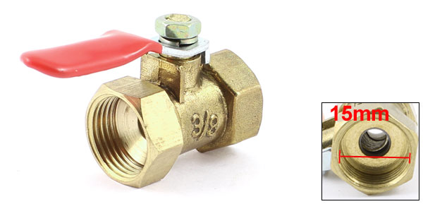 Product Name Ball Valve Level Handle Size 27 x 11mm/1.1'' x 0.43'' (L*W) Thread Diameter 3/8" PT to 3/8" PT (15mm to 15mm) Body Size 32 x 21mm/1.3'' x 0.8'' (L*W) Color Bronze Tone , Red , Silver Tone Material Solid Brass Weight 39g Package 1 x Ball Valve - Reviews