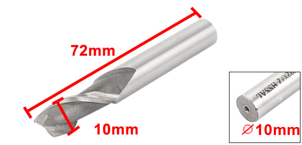 Product Name End Mill Cutter Material HSS Flute Number 2 Flutes Cutting Diameter 10mm/ 3/8" Shank Diameter 10mm/ 3/8" Cutting Depth 22mm/ 2" Total Length 72mm/ 2.8" Mill Cutter Color Silver Tone, Gray Weight 42g Package Content 1 x Straight Shank End Mill Cutter