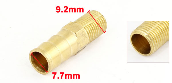Product Name Air Hose Barb Fitting Male Thread Diameter 9.2mm / 3/8"(0.360") Fit Tube 7.7mm / 5/16"(0.3") Overall Size 31 x 9.6 x 9.6mm / 1.22" x 0.38" x 0.38"(L*W*H) Color Brass Tone Material Metal Weight 7g Package Content 1 x Air Hose Barb Fitting - Reviews