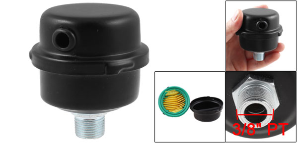 Product Name Muffler Male Thread 3/8" PT Exhaust Hole Diameter 7.6mm / 0.3" Total Size 7.3 x 6.3cm / 2.8" x 2.5" (H*Dia) Color Black Material Sponge, Metal Weight 130g Package 1 x Muffler - Reviews