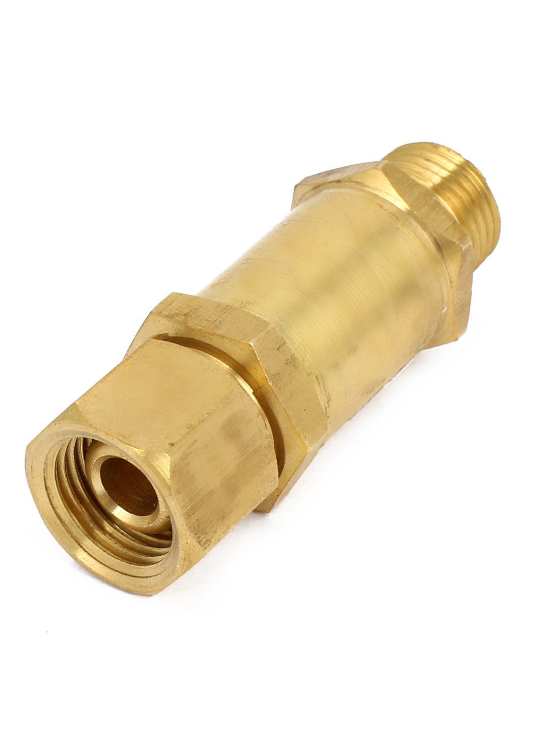 Product Name Flashback Arrestor Type Dry Type Applied Gas Oxygen Working Pressure 0.1MPa-1MPa Female Thread Size (Gas Inlet) 3/8PT Male Thread Size (Gas Outlet) 3/8PT Total Size 62 x 21mm / 2.4" x 0.8" (L*Hex Size) Material Brass Color Gold Tone Net Weight 99g Package Content 1 x Flashback Arrestor - Reviews
