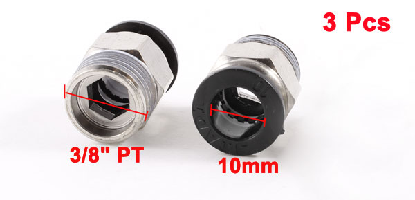 3/8PT x 10mm Joint Air Pneumatic Pipe Hose Connector Quick Copuler Fitting x 3