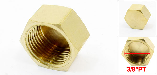 Details3/8" Female Threaded Dia Metal Hex Head Pipe Plug Cap Fitting  Product Name Hex Head Pipe Plug Color Gold Tone Material Metal Thread Diameter 15mm/ 3/8" High 10mm/ 0.4" Net Weight 13g Package Content 1 x Hex Head Pipe Plug