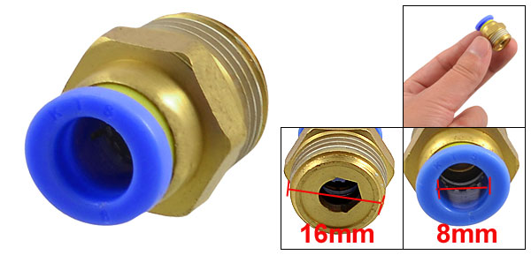3/8" Male Thread 8mm Connector Dia One Touch Tube Push In Quick Fittings
