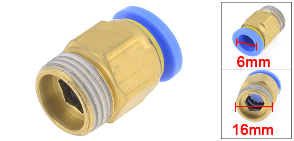 Item Name Quick Fittings Material Metal, Plastic Color Brass Tone, Blue Thread Size 3/8" PT Thread Diameter 16mm Inner Diameter(Blue End) 10mm Total Size 26 x17mm/ 1.02" x 0.77" (L*W) Weight 15g Package Content 1 x Quick Fittings - Reviews