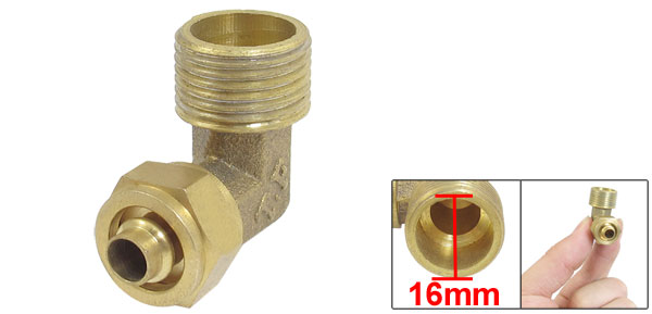 Product Name Quick Coupler Design 90 Degree Male Thread Diameter 16mm Thread Size 3/8" PT Fit Tube Outside Dia. 10mm / 0.39" Tube End Inner Dia. 5mm/ 0.2" Overall Size 32 x 28 x 15mm / 1.3" x 1.1" x 0.6"(L*W*T) Color Gold Tone Main Material Brass Weight 27g Package Content 1 x Quick Coupler - Reviews