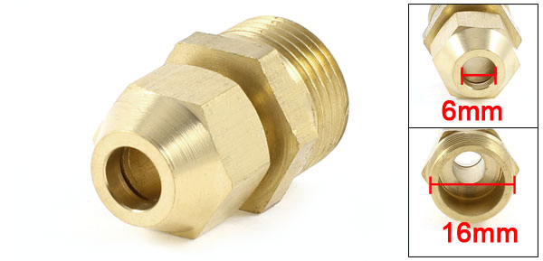 Product Name Quick Coupler Male Thread Diameter 16mm / 0.63" Fit Tube Outside Dia. 6mm / 0.24" Overall Size 27 x 19mm / 1.06" x 0.75" (Min L*Max W) Color Gold Tone Material Metal Weight 22g Package Content 1 x Quick Coupler - Reviews