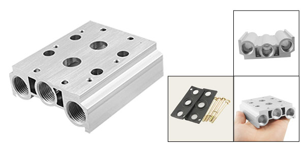 Product Name Solenoid Valve Base Stations 2 Nominal Bore 12.5mm / 0.49" Port Thread Diameter 16mm Port Thread Size 3/8" PT Mounting Hole Diameter 4.5mm / 0.177" Mouting Hole Distance(center to center) 70 x 21mm / 2.7" x 0.82" (L * W) Dimension(Approx.) 82 x 75 x 28mm / 3.2" x 2.9" x 1.1" (L*W*T) Material Aluminum Color Silver Tone Weight 210g Package Content 1 x Solenoid Valve Base