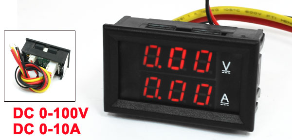 3-Digital Red LED Dual Display 0-100V/10A DC Voltage Current Meter Tester