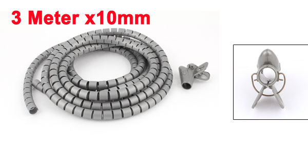 3 Meter 10ft 10mm Inner Dia Plastic Spiral Bands Cable Organizer Wrap w Clip