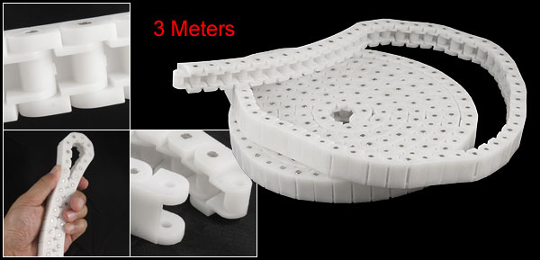 Product Name Roller Chain Type PC40 Total Length 3 Meters / 118.1" Pitch 12.7mm / 0.5" Width( Between Inner Plates) 7.5mm / 0.295 Roller Diameter 8mm / 0.314" Material Plastic, Metal Main Color White Net Weight 1121g Package Content 1 x Roller Chain - Reviews