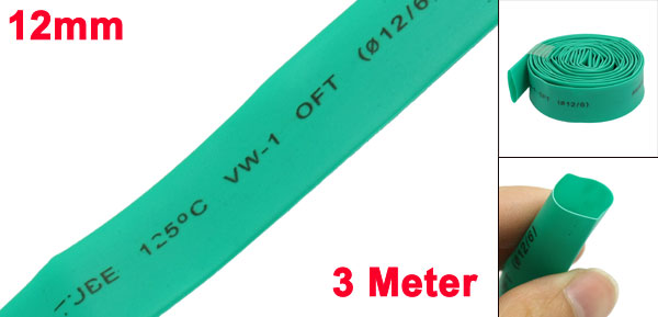 3 Meters 12mm Dia Green Polyolefin Heat Shrinking Shrinkable Tubing Tubes
