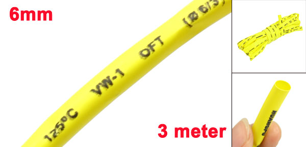 3 Meters 6mm Dia. Heat Shrinking Shrinkable Tube Tubing Yellow