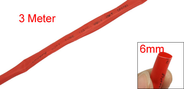 3 Meters 6mm Diameter Heat Shrinkable Tube Shrink Tubing Red
