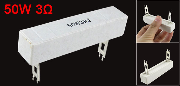 Product Name Cement Resistor Body Material Ceramic, Cement Power 50W Resistance 3Ω Tolerance ±5% Body Size (Approx.) 87 x 19 x 17mm / 3.4" x 0.74" x 0.67" (L * W * H) Pin Size (Approx.) 30 x 10mm / 1.2" x 0.4"(L*W) Color White Weight 65g Package Content 1 x Cement Resistor - Reviews