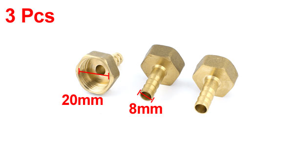 Product Name Barb Fitting Fit Tube Inner Dia 8mm / 0.3" Thread Diameter 20mm/1/2 BSP Overall Size 23 x 32mm / 0.9" x 1.25" (D*L) Color Gold Tone Material Brass Weight 54g Package Content 3 x Barb Fittings - Reviews