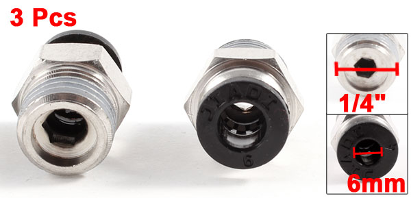 3 Pcs 1/4" PT Male Thread 6mm Push In Joint Pneumatic Connector Quick Fitting