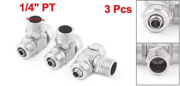 3 Pcs 1/4"PT Male to 8mm T Shape Pneumatic Fitting Tee Quick Connector Coupler