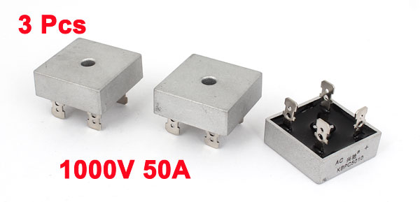 3 Pcs 1000V 50A Metal Case 4 Pin Single Phase Bridge Rectifier KBPC5010
