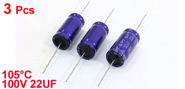3 Pcs 100V 22UF 105C Aluminium Electrolytic Capacitor 13mm x 25mm
