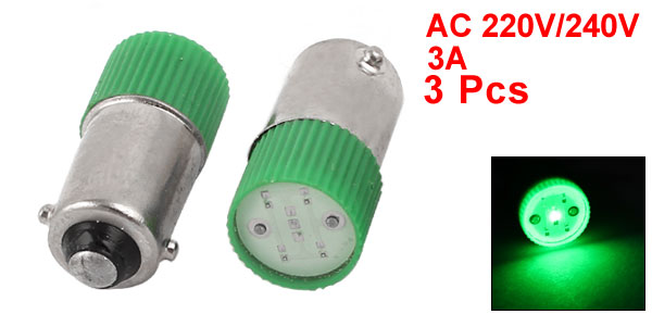 3 Pcs 10mm Round Head Green LED Bulb Light Signal Indicator Lamp AC 220V/240V 3A