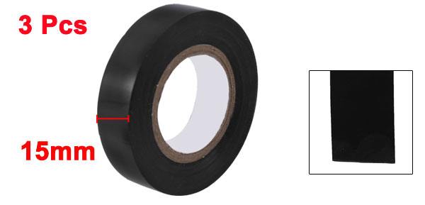 3 Pcs 15mm Wide Black Adhesive Electrical Insulation Tape Roll
