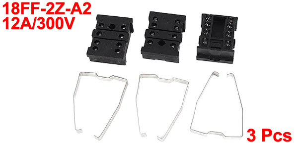 3 Pcs 18FF-2Z-A2 PCB Soldering 8 Pin Relay Socket Base Holder 12A 300V Black