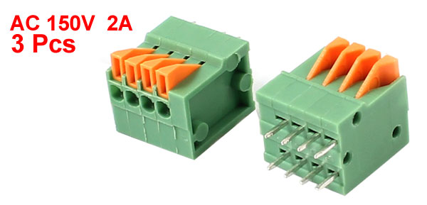 3 Pcs 2.54mm 4 Positions PCB Mount Screwless Spring Terminal Blocks 150V 2A
