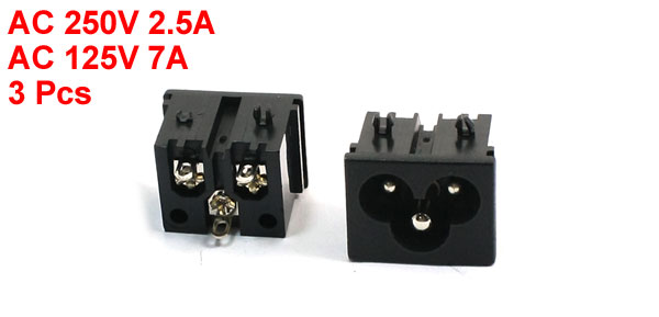 3 Pcs 250V/2.5A 125V/7A 3 Pin IEC320 C6 Male Plug AC Power Socket