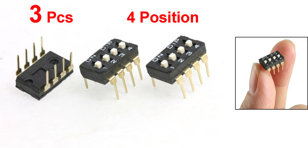 3 Pcs 2.54mm Pitch 4 Position IC Type DIP Switch Black Auces