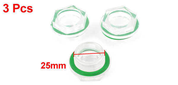 Details3 Pcs 25mm Male Thread Dia Replacing Parts Liquid Sight Glass for Air Compressor  Product Name Oil Level Sight Glass Material Plastic,Rubber Color Clear, Green Thread Diameter 25mm/1" Overall Size 35 x 20mm/ 1.4" x 0.8" (D*T) Net Weight 24g Package Content 3 x Oil Level Sight Glasss