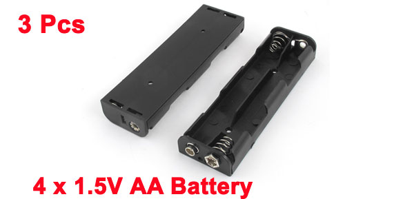 3 Pcs 4 x 1.5V AA Battery Holder Plastic Case Storage Box Black
