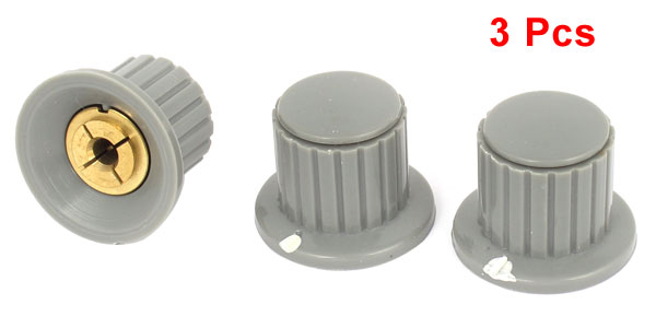 3 Pcs 4mm Shaft Insert Dia Brass Tone Core Potentiometer Control Knobs Gray