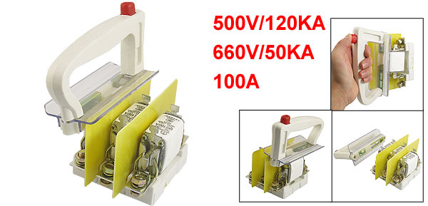 3 Pcs 500V/120KA 660V/50KA 100A Short Circuit Protection Handle Fuse Link w Base