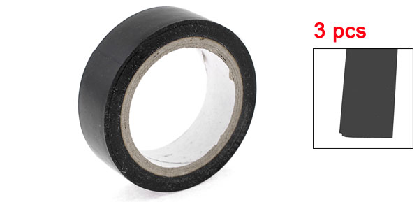 3 Pcs 55mm x 16mm Black Adhesive Electric Insulation Tape Roll