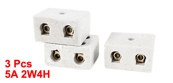 3 Pcs 5A 2W4H 2 Way 4 Hole Connector Porcelain Ceramic Terminal Block