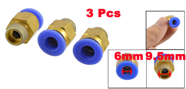 3 Pcs 6mm Tube 1/8" Thread One Touch Air Pneumatic Fast Connectors