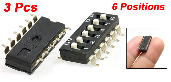 3 Pcs 6P Positions 2 Row 2.54mm SMT SMD DIP Switch Black