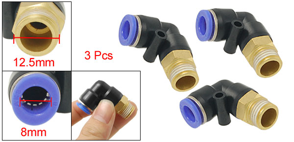 3 Pcs 8mm OD Tubing Air Pneumatic Elbow Quick Fittings