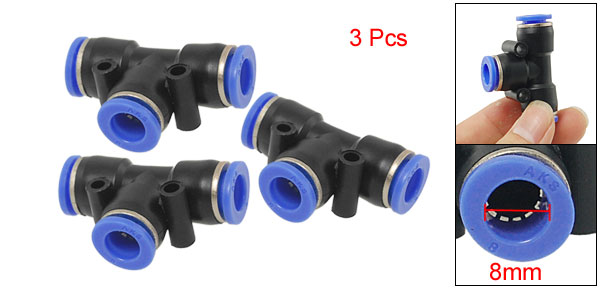 3 Pcs 8mm Pneumatic Air Pipe Connection Quick Fittings