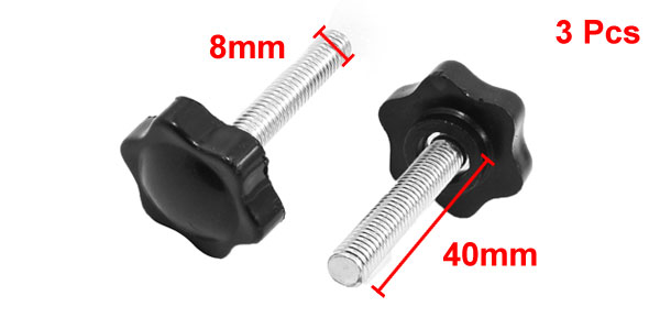 3 Pcs 8mm x 40mm Male Thread Screw 32mm Dia Star Shaped Head Clamping Knob