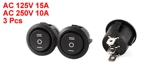 Product Name Rocker Switch Poles SPDT Terminals 3 Pins Position On/Off/On Three Position Rated Voltage & Current AC 125V, 15A AC 250V, 10A Overall Size(Approx.) 23 x 29mm / 0.9" x 1.1" (Dia.*H) Mounting Size 20 x 15mm / 0.8" x 0.6" (Diameter*Depth) Color Black Material Plastic, Electronic Parts TWeight 15g Package Content 3 Pcs x Rocker Switches - Reviews