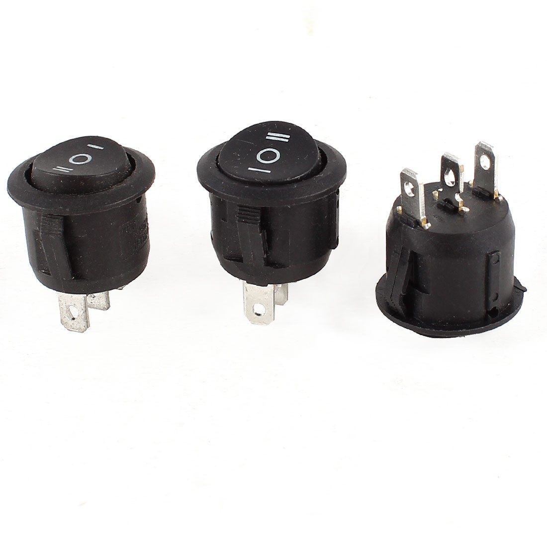 Product Name Rocker Switch Action SPDT Terminals 3 Pin (ON-OFF-ON) Rating Voltage AC 10A125V / AC 6A250V Total Size 2.2 x 2.8cm /0.86" x 1.1"(D *H) Mounting Dimension 2.1 x 2.3cm/0.8'' x 0.9'' (D*H) Color Black, Silver Tone Material Plastic & Metal Total Weight 17g Package Content 3 x Rocker Switch - Reviews