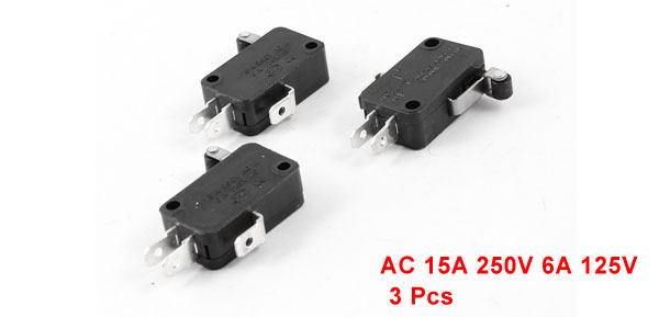 3 Pcs AC 15A 250V 6A 125V SPDT 3 Pins Hinge Roller Lever Limit Micro Switch