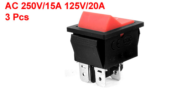 3 Pcs AC 250V/15A 125V/20A 4-Pin SPDT I/O Panel Mount Boat Rocker Switch