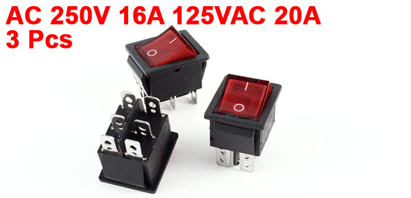 3 Pcs AC 250V 16A 125VAC 20A On/Off DPDT Panel Mount Snap In Boat Rocker Switch