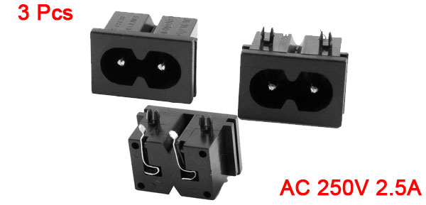 3 Pcs AC 250V 2.5Amp 2 Pins IEC320 C8 Power Inlet Socket Connector Solder