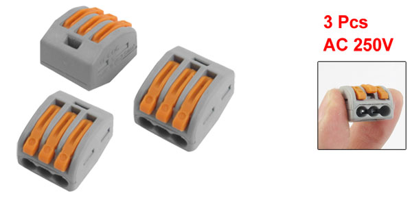 3 Pcs AC 250V 3 Pin Lever Lock Quick Connecting Terminal Block 0.75-2.5mm2