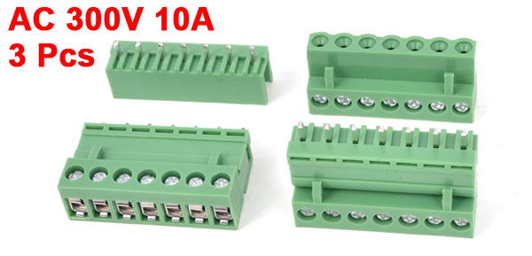 3 Pcs AC 300V 10A 7P Pins PCB Screw Terminal Block Connector 5.08mm Pitch Green